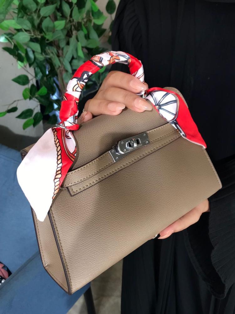 شنطة نسائية هرمز صغيرة هي اختيار مثالي للمناسبات اليومية والمميزة على حد سواء. تتميز بتصميم أنيق من الجلد الفاخر الذي يضفي عليها لمسة من الفخامة. حجمها المثالي يجعلها سهلة الحمل والاحتفاظ بها، بينما يضيف المقبض اليدوي الملتف عليه شال صغير ملون لمسة من الأناقة والتفرد.