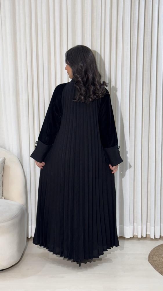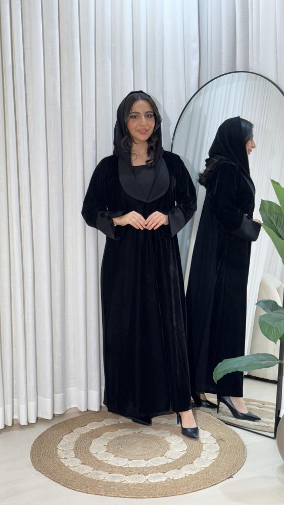 - عباية مخمل اسود مصنوعة من مزيج فاخر من المخمل والكتان يمنحك دفئاً وأناقة.
